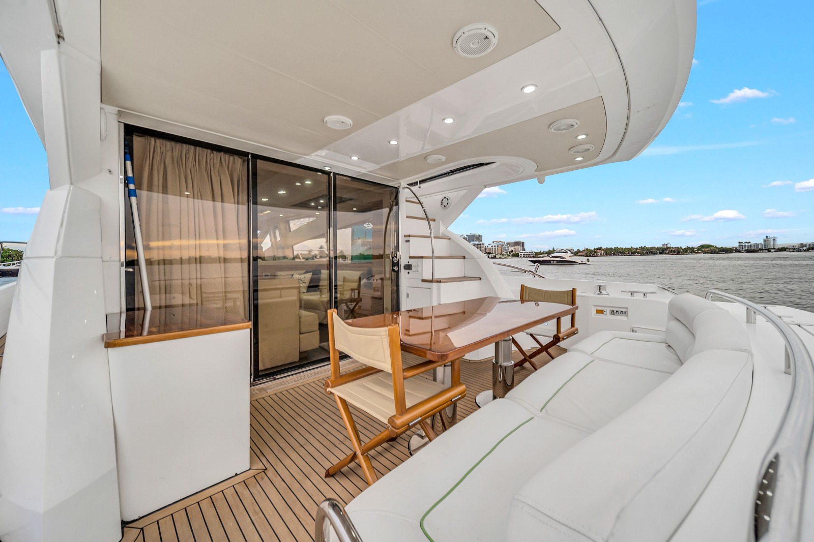 Relax in style with your private cabana, offering shaded comfort and luxurious amenities—perfect for enhancing your Miami yacht experience.